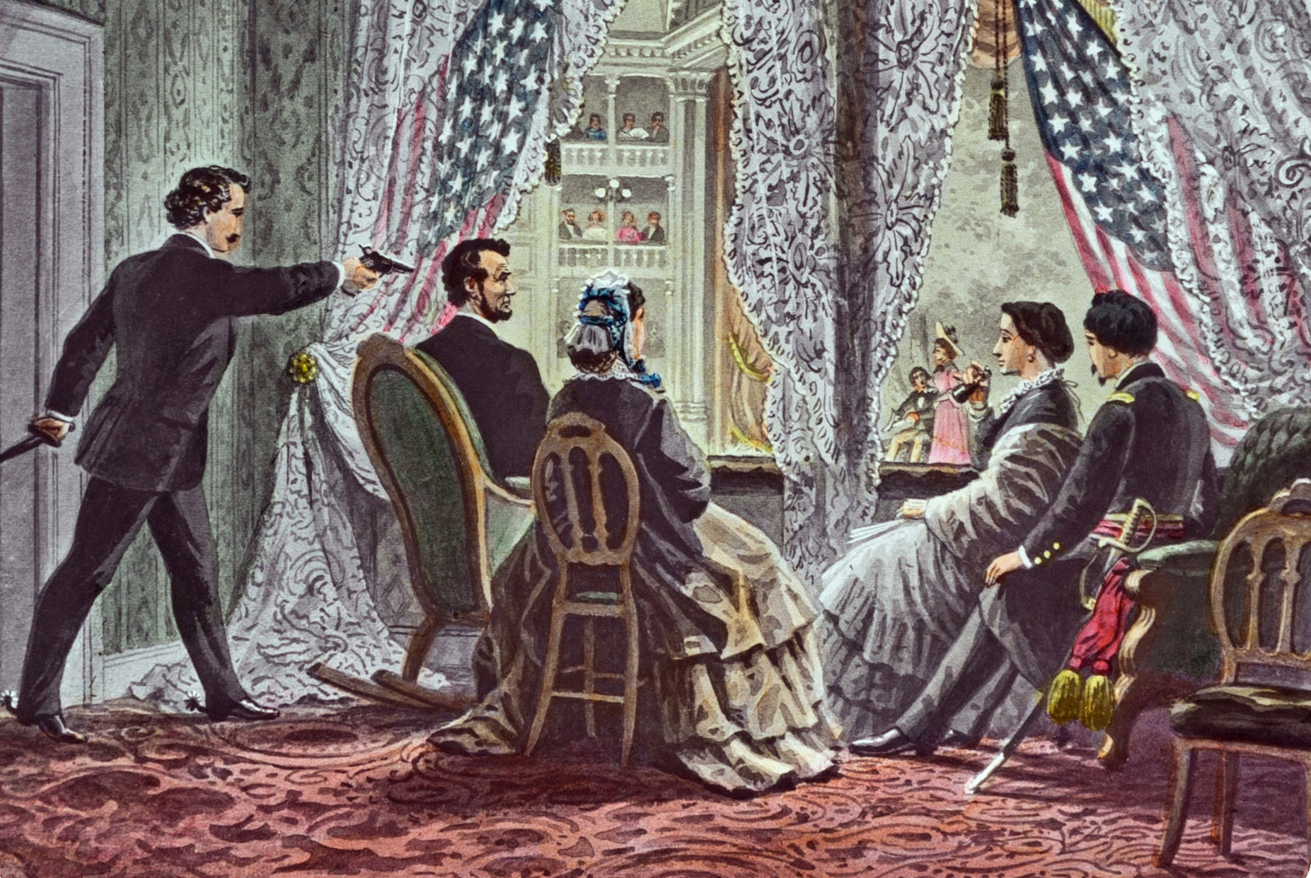 L’assassinio presidenziale più storico rimane quelli di Abramo Lincoln (1809-1865), ucciso mentre si trovava a teatro dall’attore John Wikes Booth (1838-1865). Il Booth al momento di premere il grilletto sulla nuca del presidente avrebbe proferito la formula latina «sic semper tyrannis» («così sempre per i tiranni», che è il motto dello Stato della Virginia. Curiosamente, si era detto che la moglie di Tony Blair, Cherie Booth, fosse sua discendente, ma la cosa sembra smentita.
