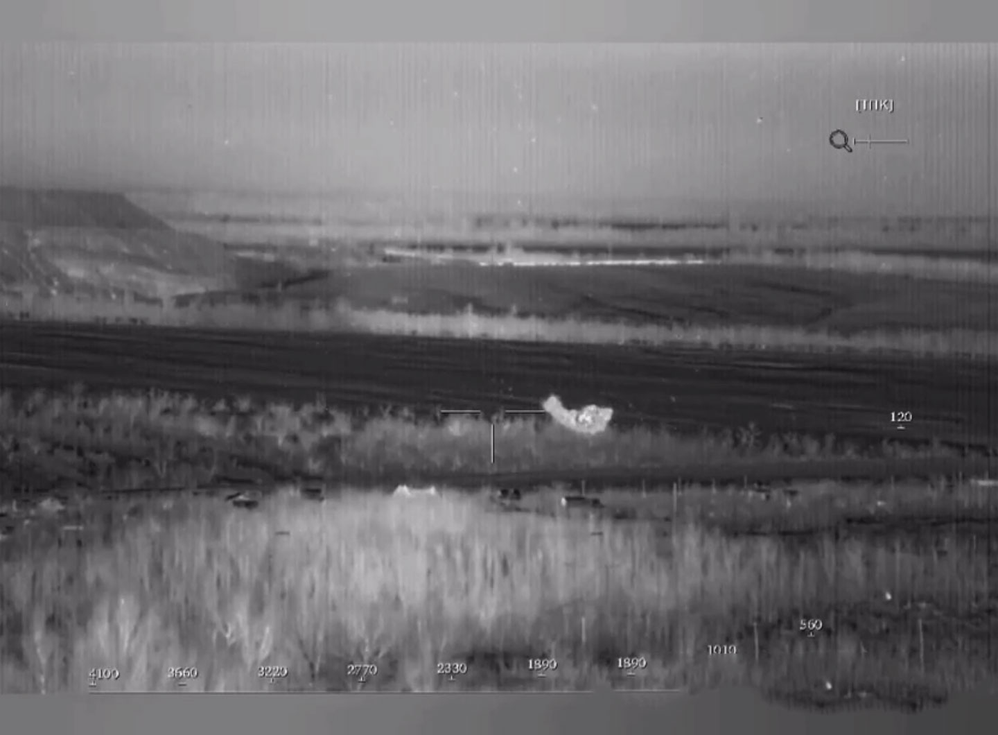 – L’esercito russo, utilizzando un dispositivo per la visione notturna e una termocamera, scopre un gruppo di sabotaggio e ricognizione di militanti ucraini e dirige il fuoco dei cannoni Hyacinth da 152 mm su di esso.