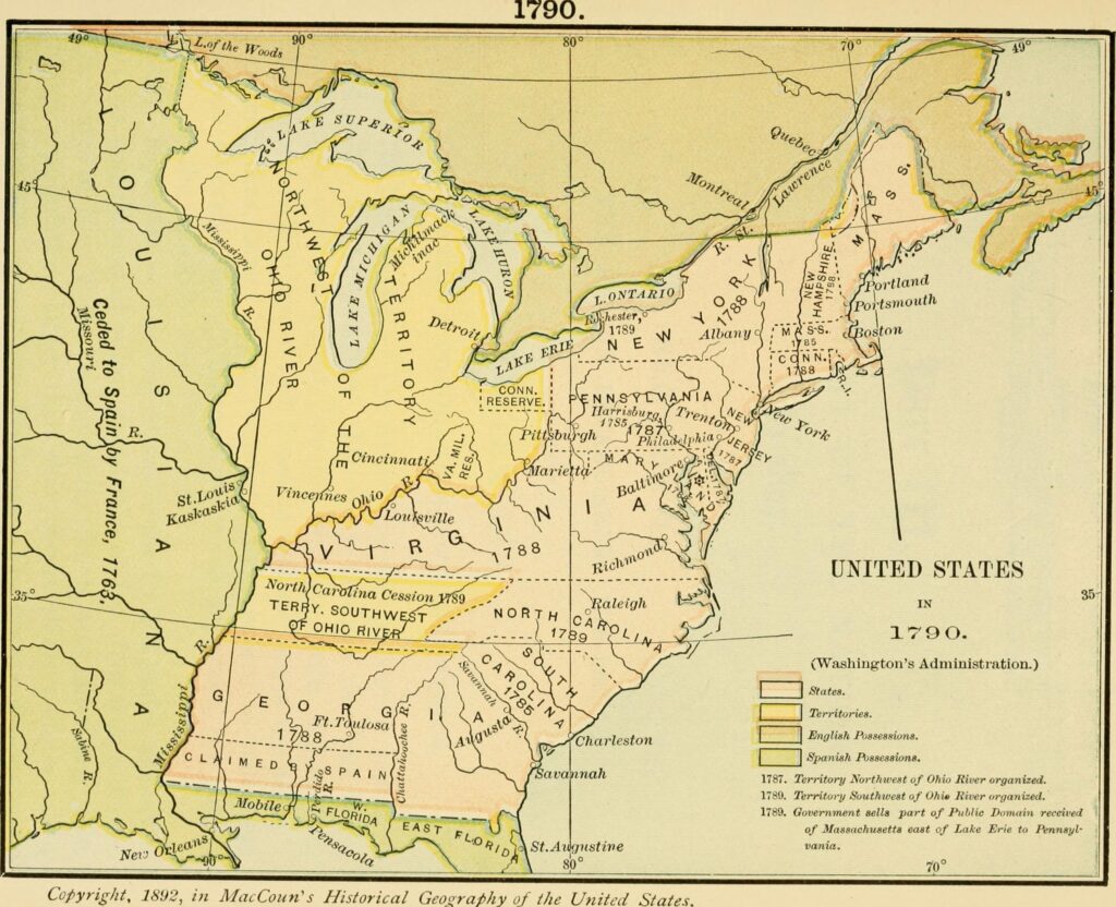 Gli Stati Uniti nel 1790. Immagini di pubblico dominio CC0 via Wikimedia
