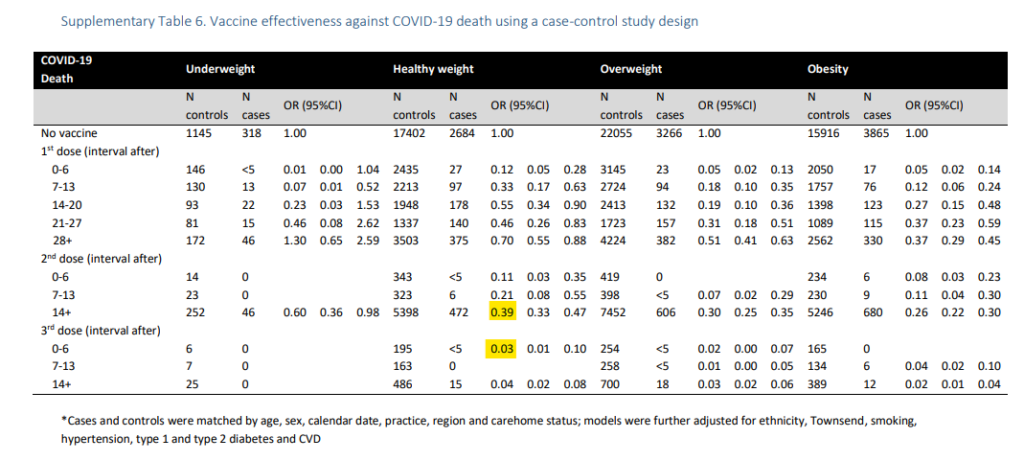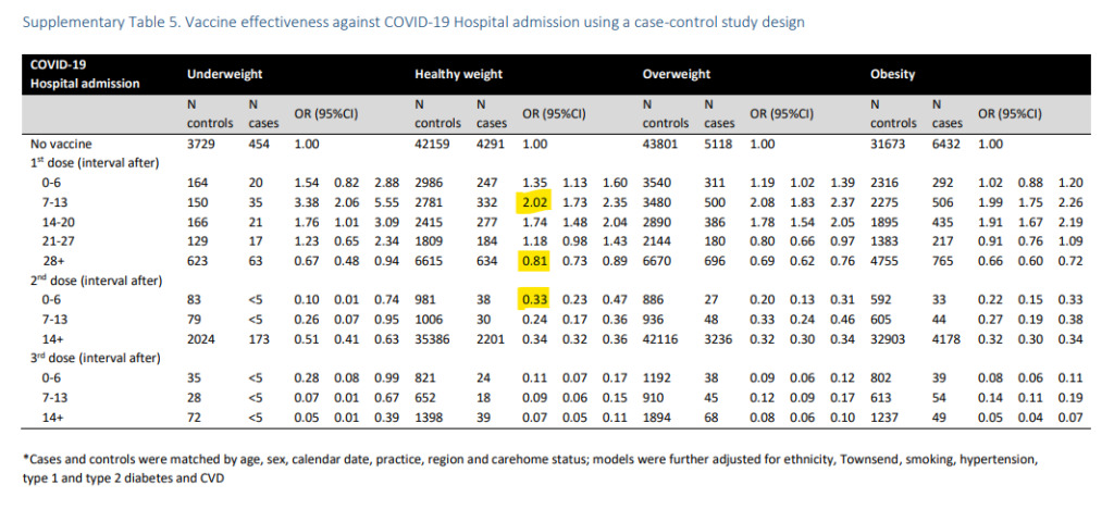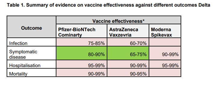 «Questa è un’efficacia negativa del vaccino (dove le infezioni sono più elevate nei vaccinati rispetto ai non vaccinati) di meno-44%. Questa efficacia negativa è in linea con quanto visto nei dati grezzi dell’Inghilterra all’epoca e anche negli studi di altri paesi, ma contraddice le stime ufficiali del governo, che affermavano che l’efficacia era del 60-85% contro l’infezione della delta».