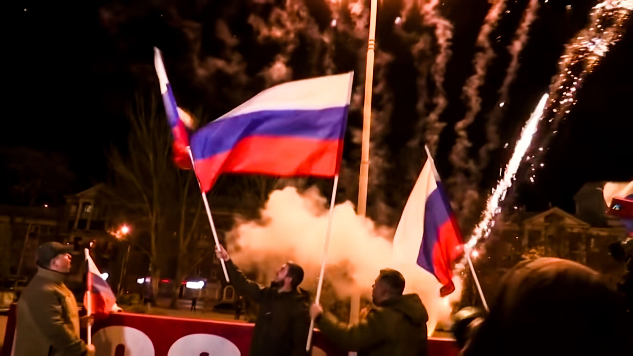 Dopo il riconoscimento da parte del Cremlino, ieri sera la popolazione del Bacino del Don ha festeggiato in piazza, con bandiere russe, fuochi di artificio, e cortei di auto.