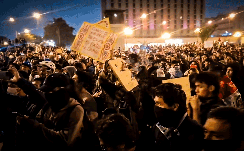 You’re watching Peruvian workers standing strong against the cops last night as resistance to the new puppet govt explodes across Lima. At least one protester shot dead. We don’t give up the fight against US imperialism. This is what resistance looks like.pic.twitter.com/vbVZtVM0Iq