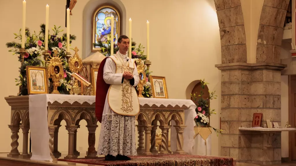 Nella sua omelia, don de Lacoste sottolinea l’importanza della fedeltà nei nostri impegni, come per Giuditta e la Vergine Maria. Giuditta, attraverso la sua fede e il suo coraggio, ha trionfato sul nemico, così come Maria ha trionfato sul male fin dalla sua immacolata concezione.