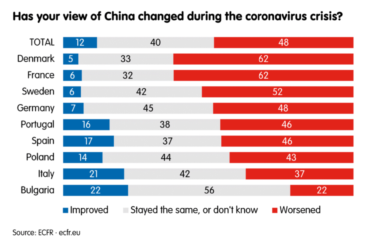 «I tentativi della Cina di dividere gli europei durante la crisi e la sua retorica apertamente ostile che ha preso di mira la risposta delle democrazie occidentali all’emergenza sanitaria sono serviti da campanello d’allarme» per tutta l’opinione pubblica