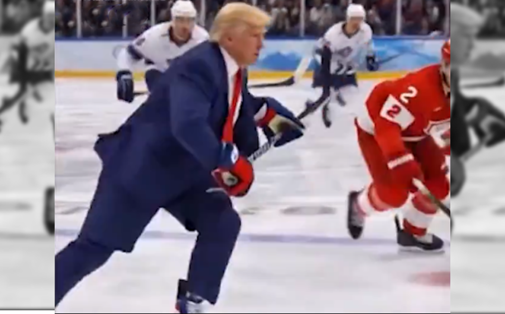 THIS IS NOT NORMAL: Donald Trump just post a video inserting himself in last night’s Olympic victory and depicts him punching and beating Canadian hockey players.