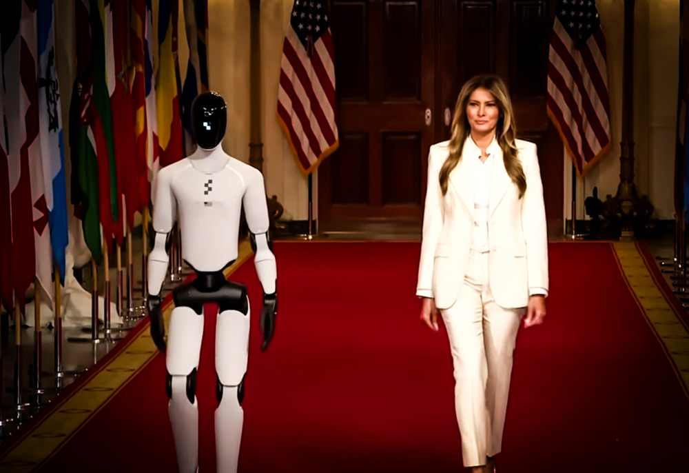 Melania compare affiancata da un robot umanoide