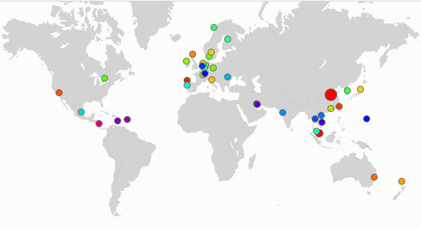 Secondo la mappa si sarebbero registrati anche in Italia dei casi: due a Roma, uno in Umbria.