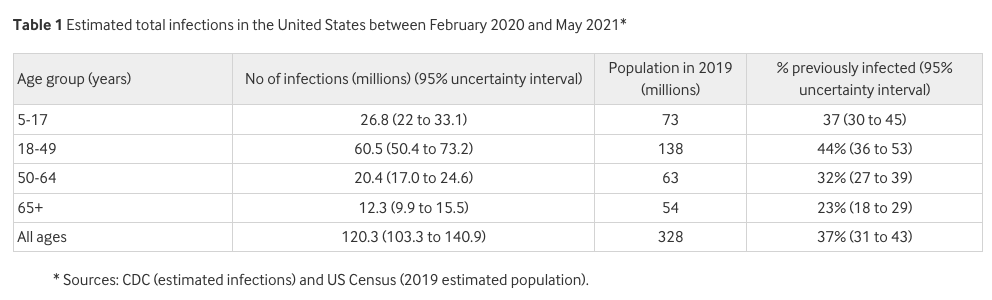 Quando il lancio del vaccino è iniziato a metà dicembre 2020, più di un quarto degli americani – 91 milioni – era stato infettato dal SARS-CoV-2, secondo una stima dei Centers for Disease Control and Prevention (CDC). A partire da maggio di quest’anno, tale percentuale era salita a più di un terzo della popolazione, compreso il 44% degli adulti di età compresa tra 18 e 59 anni (tabella 1).